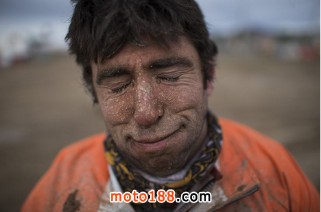 今天是非常困難的一個賽段,在途中遭遇下雨,還伴有高海拔,結果就是巴雷達出現撞車,最后階段甚至是一只手控車完賽。“在像這樣的賽段,你必須要超級全神貫注才行,但即使如此……。路書里是包括有危險警告,不過并沒有特定指出是1級、2級或3級。我遠遠就看到有危險,差不多距離100米就開始剎車,但泥漿讓摩托車發生側滑,我還是撞到了什么障礙物,結果直接把我彈飛出去。”