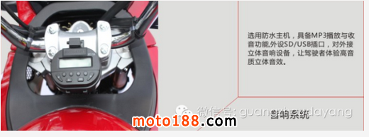 大陽梟雄DY200-5旅行版摩托車集手機充電、音樂播放、調(diào)頻收音機、高保真楊聲器于一身