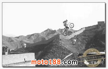 92年亞洲第一飛人柯受良駕駛著他的雅馬哈250CC型摩托車成功飛躍金山嶺長城。