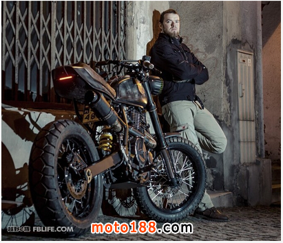 在對座椅皮子的選擇上他比較挑剔,實用了天然牛皮和老式的復古座椅。??為了保持車輛外觀的整潔,他把所有電纜和電氣元件安放在座位下。重新定制的電纜束穿過了車把連接轉向按鈕、尾燈及指示燈。