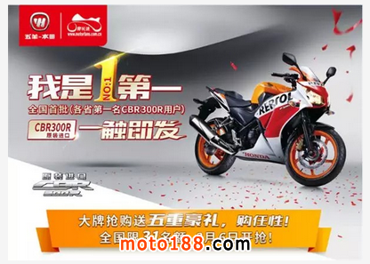 CBR300R大牌風范,你值得擁有!“我是第一”CBR300R全國首批用戶預售搶購活動還有三天,趕緊行動吧!