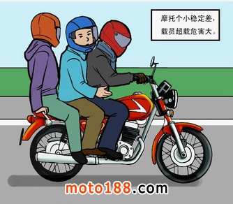 摩托車載人載物加劇了車輛的不穩(wěn)定性,給交通安全帶來(lái)隱患。法律規(guī)定摩托車要按照行駛證上的核定載人數(shù)載人,且在高速公路上行駛時(shí)摩托車不得載人,不得運(yùn)載超過(guò)規(guī)定高度的物品,不得在車把上懸掛物品。