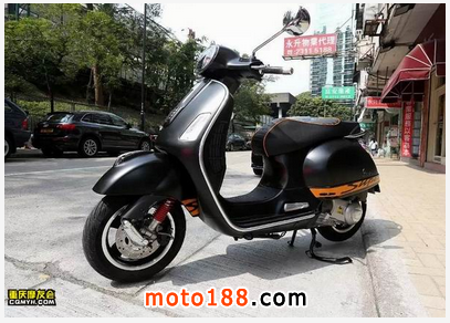 GTS 300 Super Sport是Vespa之中的跑車(chē),除了是Vespa四沖程水冷機(jī)器鐵殼綿羊最大排氣量之外,還配有象徵高性能的裝飾:例如車(chē)頭有Vespa S大字凸章,還有紅色頭擔(dān)避震彈簧,具預(yù)載調(diào)較功能的雙筒尾避震,合金輪圈是銀圈黑柱 two-tone 款式。此外,頭尾碟剎,車(chē)頭柜桶位置還有SuperSport凸章。