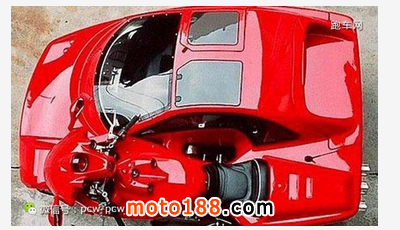 從圖片中可以看出,這款偏斗三輪摩托最大的特點在于機車旁邊那完全仿照法拉利跑車打造的乘客艙。