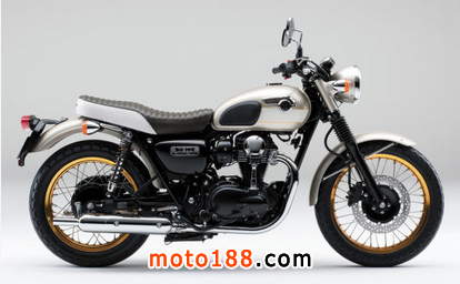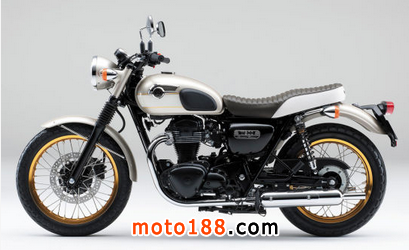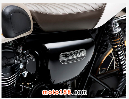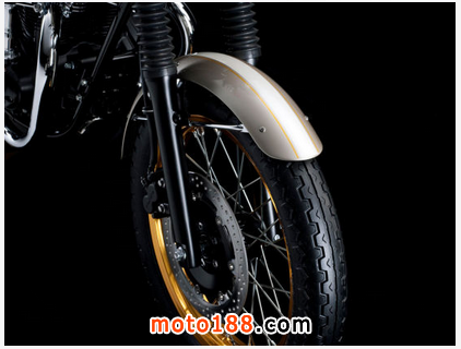 而且可以為客戶定制私人專屬LOGO,陽極氧化噴涂的金色輪轂,白色和褐色混搭的坐墊。這款W800限量版只生產300輛,每輛車均配有“特殊身份”銘牌,銷售價格約合人民幣47000元。
