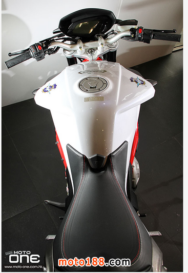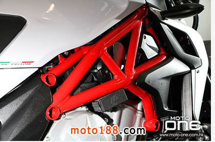 其次,2015 MV Agusta BRUTALE 800 ABS 深灰與白色閃粉底的新色抵港(紅色快將抵港),三色的車身鋼管車架均改用搶眼的紅色,并新增了油缸與座位間一片保護膠。至於車身設計、引擎及裝備均與2014款相同。