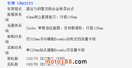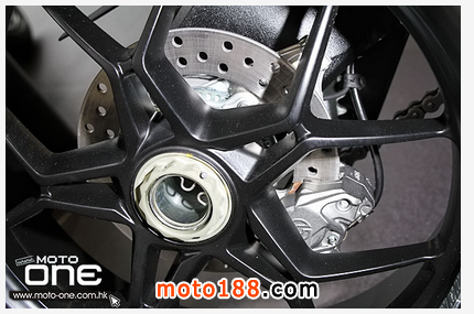 ●前掣動是雙320mm浮動碟配Brembo放射式四活塞卡鉗,一對擁有全調校的MARZOCCHI 43mm倒立前叉。
