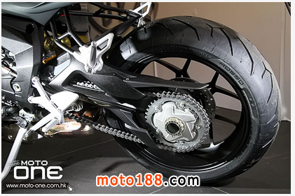 除此之外,加大排氣量后的新引擎,馬力及扭力輸出由 108.5hp/12,500rpm增至125hp/11,600rpm,扭力由6.63kg-m/12,000rpm增至8.25kg-m //8,600rpm。從rpm轉數的數字來看,新引擎的馬力及扭力比675來得更快更早,這點或許可以印證低扭改善的原因。還有1至6檔的波箱比例也是 跟675一樣,但頭尾牙卻由前16尾43改為前16尾41。