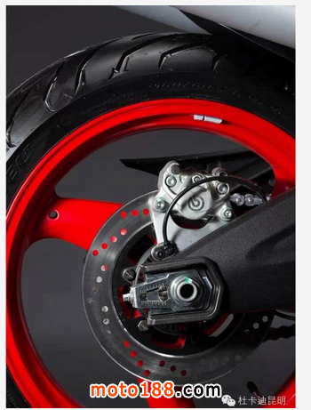 后剎配備最新的 Brembo 245毫米后浮動盤配以雙活塞卡鉗,并配備ABS