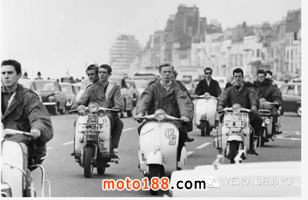 Vespa式的價值觀塑造其實與60年代興起的MOD(Modernist)文化分不開關系。二十世紀末六十年代初,世界大戰結束,英國年青人終于有機會享受生活. 然而不列顛帝國的國力已經被美國和蘇聯超越,不甘心落后成二流國家,這些年青人開始開創一種截然不同的生活方式.Mods們的核心思想簡單扼要,那就是享 受青春,和More beautiful(更加美好)。他們追求上流社會的紙醉金迷,穿著昂貴的意大利襯衫,窄身西服和奢侈的尖頭皮鞋.這些品牌很多保留到了今天但仍然價格昂貴.男孩兒們頭發梳理整潔并且帶有時髦的法國邊線,女孩兒們則模范男式發型并且朝氣蓬勃。