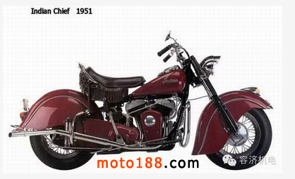 1949年隨著英國貨幣的貶值,英國進口車更加便宜。到1950年BROCKHOUSE有限公司追討債務,將印第安分離為生產、銷售兩個公司,然后分別賣給美國聯合摩托車有限公司,其英國母公司是諾頓公司。“酋長”的生產又恢復了3年多,從1950年到1953年。這些年里,“黑鷹酋長”配備了伸縮式前叉,可能是印第安所有產品的最高峰。