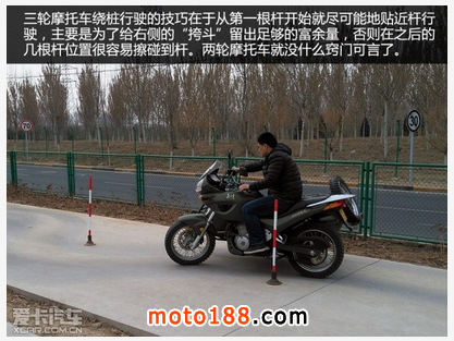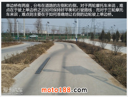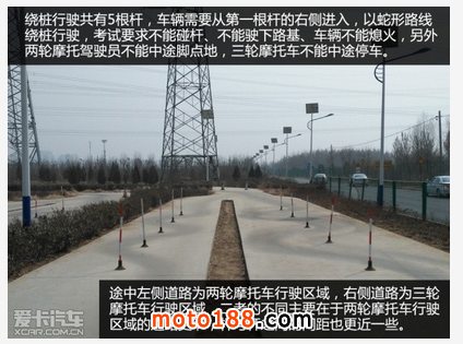在摩托車的場地駕駛技能考試中,必考科目有四項(兩輪摩托車和三輪摩托車都是如此),繞樁行駛、單邊橋、坡路定點停車和起步,其余科目只是在行駛路線中會經(jīng)過,因此培訓(xùn)過程也重點是針對考試科目來進(jìn)行教學(xué)和訓(xùn)練。