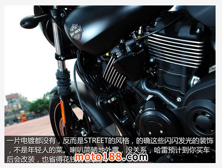 變化的還有騎行質感,以往的哈雷,哪怕是最輕巧的883系列,騎起來都會有一種大車特有的分量,和一騎就能上手,強調人車工程的歐日車型相比,哈雷向來不太考慮車主的感受。我懷疑他們造車的理念是:按照老祖宗留下的配方,用最好的材料,前輩的教誨,建造出一部摩托車,至于這部車能發出多少馬力,是不是好騎,甚至踩下剎車能不能及時停下來,都是不重要的。STREET似乎沒了這些固執,是最容易上手的一部哈雷。離合器和油門,從行程到響應,都是很好適應的,用某位資深哈雷車主的話:“和騎一部日本車沒啥區別”。
