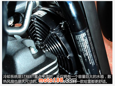 最最重要的,是全新的水冷系統,水箱面積遠大于剛剛才追加上水冷系統的103立方發動機,這是個“誰用誰知道”的好處,哈雷騎士最大的噩夢,是走走停停時,騎士的胯下會被風冷發動機熱情地炙烤,“煎蛋”的痛苦,將不會出現在STREET 750上。