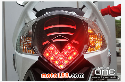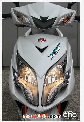 ●高、低燈效果顯示,而大燈下兩道白光燈使RACING KING有大車的效果。