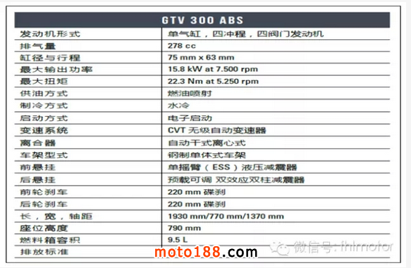 動力方面車架與發動機和GTS車系無異,USB接口插座同樣配備,而前減震采用全新的ESS懸掛系統,前后ABS&ASR系統也是標準配置。