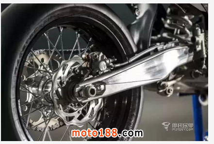449CC的頂置凸輪軸單缸四氣門發(fā)動機(jī)最大馬力為60匹,然而車重只有110.5公斤,配備APTC滑動離合器和五速變速箱。減震毫無疑問為KTM御用的WP,前叉為48毫米,而且前、后減震均為全段可調(diào)。Brembo剎車系統(tǒng)、17寸的象牌光頭胎均一應(yīng)俱全。