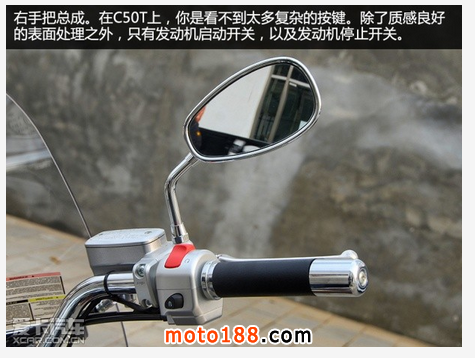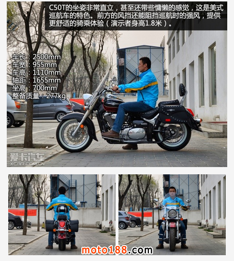 坐高僅有700mm的C50T,帶來(lái)了相當(dāng)舒適的乘坐感受。1.8米的騎士可以輕松地將雙腳同時(shí)平貼于地面,也給騎士安穩(wěn)的感覺,畢竟這輛車的重量高達(dá)277kg,若是不能“腳踏實(shí)地”的騎車,對(duì)于騎士的心理壓力可是不小。