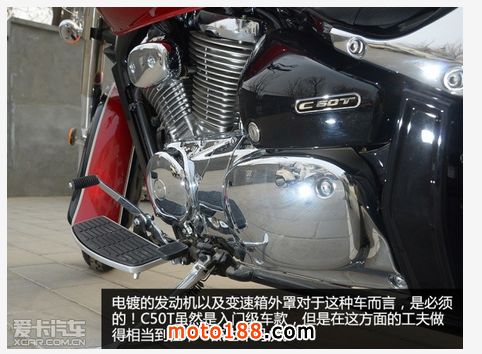 編輯點(diǎn)評(píng):我們所拍攝的C50T為2013年日本進(jìn)口的車型,目前特惠價(jià)12.8萬(wàn)元。以它的做工用料而言,算得上是物超所值了!整體而言,C50T雖然是一輛充滿男子氣概的美式巡航車,但是鐵漢也有細(xì)膩的一面!此車在細(xì)節(jié)展現(xiàn)出日本車廠慣有的細(xì)膩,造工、模具的細(xì)致度都屬上乘之作。而且,在質(zhì)量的優(yōu)勢(shì)之外,日本的美式巡航車在外形上也越來(lái)越有美式風(fēng)范,看起來(lái)不再像是四不像的仿制品?;蛟S,C50T是給那些注重質(zhì)量,卻又喜歡美式風(fēng)格摩托車的車主,一個(gè)最佳的選擇!