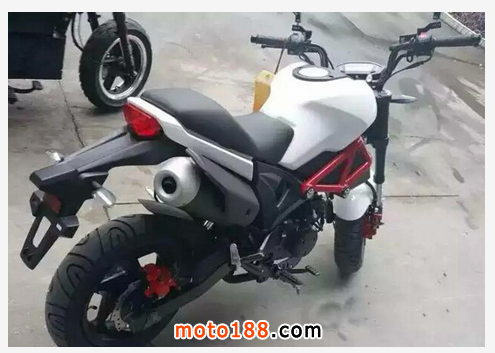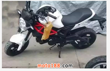 隨銀鋼華北區銷售經理杜總進入銀鋼廠區考察,無意中發現一輛十分討人喜歡的小車。乍一看,這車有點相似DUCATI的新款MONSTER系列,但仔細觀察后發現只有油箱和大燈比較相似,其他地方都是不太相同的。