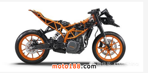 RC390 的編織式鋼管車架以Duke車架為基,但增加了后傾角,縮短了軸距和增加了離地距,令RC390的操控更敏銳,轉(zhuǎn)向極限更高。鋁合金尾搖臂和WP單筒尾避震都是高規(guī)格貨色,有極佳的抗扭性能和循跡表現(xiàn),有助提升操控。