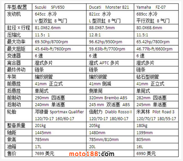 話不多說,究竟是哪3款,從左到右依次為:鈴木SFV650、杜卡迪怪獸821、雅馬哈FZ-07。都是走肌肉暴露控風(fēng)格的街車,只要是機(jī)車愛好者都會欲罷不能。為何選這三款,以下是媒體的評選理由: