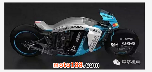 它由一群國外設計師共同操刀設計,他們還有一個共同點,都是摩托車發燒友,于是便有了這款結合了速度與創意的作品。設計師們對摩托車的結構和動力都進行了改造,在車身下面安裝了三個氣罐,氣罐內可以噴射出強大的高壓汽流,以此作為摩托車的動力。同時在外觀方面也進行了大幅改動,框架部分采用了鋁鎂合金,車身富有光澤,看起來科技感十足。