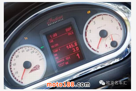 儀表也同樣功能強(qiáng)大,它包括了實(shí)時(shí)胎壓,續(xù)航里程,油耗,多媒體信息,氣溫等。在首領(lǐng)上想得到的大量信息,都可以很容易地透過(guò)左車把的按鈕切換顯示。