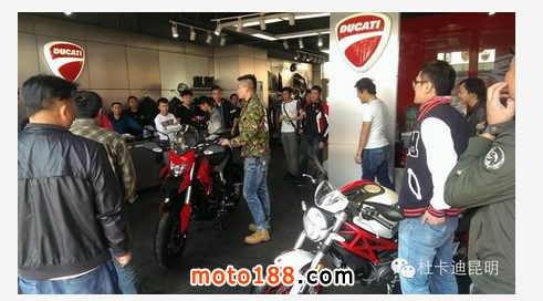 2015年3月14日,杜卡迪昆明展廳舉辦了Monster795紅條版的新品發布會,同時組織杜卡迪車主完成了環滇池探春之旅。Monster795 擁有經典的設計、靈活的操控和超高的性價比,自1993年首臺 Monster 怪獸面世以來,這一車系推出已經有22年時間,杜卡迪一直秉承堅持 Monster 怪獸最初的設計理念:化繁為簡,制造出最方便、最純粹的摩托車。這一車系開創了“裸車”這一經典車款的全新時代,時值今日,它已經杜卡迪全球市場范圍內最熱門車型!