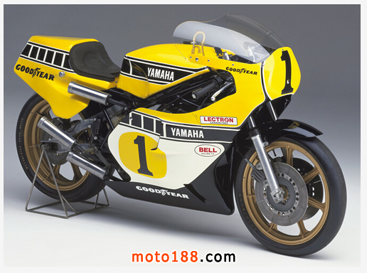 1973年的YZR 500,看得出保留了1960年搭配,以白色背景搭配紅線條,而此涂裝則被廣泛的應(yīng)用到各車種