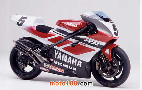 1978年的YZR 500,在紅色直線插入垂直線,藉以營造出鏈條區(qū)塊的感覺,而這種涂裝配色后來被稱為"Block pattern",后期被更加廣泛的應(yīng)用到各車種,從賽車到越野車都有,最后更被運用到運動車型上,并廣為車迷及媒體所認(rèn)識,