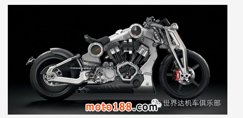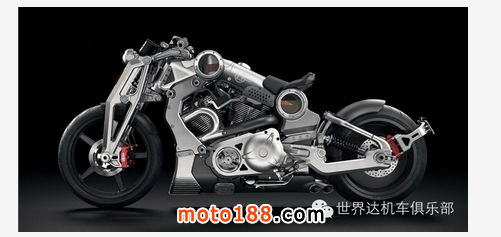 該車采用一副風冷(帶油冷裝置)V 型 56 度雙汽缸的發動機,排汽量 132 立方英寸(2,163 cc),最大馬力輸出達到 200 匹。發動機與整個車身的主體材料是以美標 6061 航空鋁、再以 CNC 數控加工制作而成,外觀造型采用了一個極為激進的裸露金屬肌肉設計,以小量的碳纖組件作為襯托,而讓人過目不忘的還有那巨大的 240/45ZR-17 后輪胎。