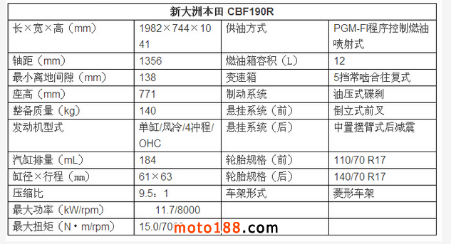 【CBF190R配置表】