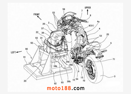 雖然申請專利的申請中標注試驗車輛為Ninja 1000,但老周從示意圖車輛的后搖臂及前叉來看,明明就是一臺Ninja 300······