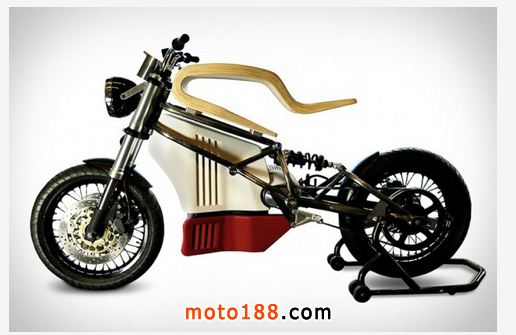 受經(jīng)典定制與咖啡館賽車影響,設(shè)計(jì)師 Martin Hulin 帶來了 Expemotion「E-Raw」純電動(dòng)概念摩托車 。盡管仍然只是一個(gè)概念,然而在四個(gè)匠人的努力下,首個(gè)完整的原型已然展現(xiàn)在我們面前,金屬與木材原料各安其位,共同塑造了這輛獨(dú)特的摩托車。管狀鋼架中容納了驅(qū)動(dòng)電池,并對(duì)膠合板座位起到支撐作用,而超過八十層木板模制而成的座位則既堅(jiān)固、又富有舒適的彈性。另一方面,設(shè)計(jì)師還將智能手機(jī)融入其中,可作為儀表盤、中控盤使用,這是傳統(tǒng)與現(xiàn)貨、機(jī)械工藝與電子技術(shù)的完美結(jié)合。