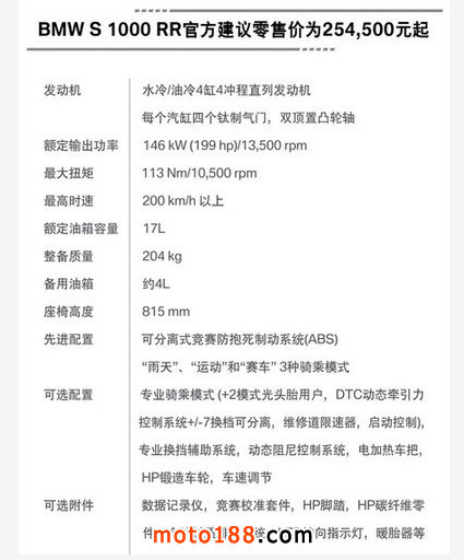 此次發(fā)布的BMW S 1000 RR共2款車型,官方建議零售價(jià)為運(yùn)動(dòng)版RMB 254,500;競技版RMB 273,200元。