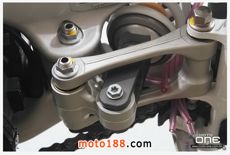 ●原裝車配備WP 48mm 4SC倒立前叉,采用流行的左右獨立調校,左為下壓,右為回彈,只須手動便可進行調校,非常方便。