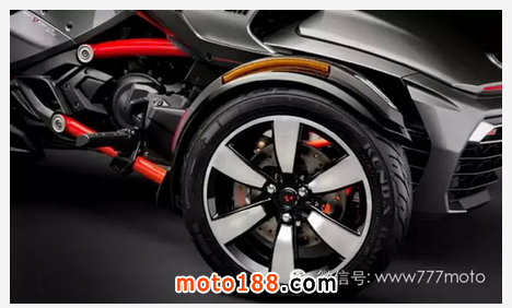 前雙A臂結(jié)合防傾桿的配置是四輪跑車最常見的配套,如今轉(zhuǎn)至重機(jī)上使大家再不會質(zhì)疑這輛《Can-AM Spyder F3-S》在結(jié)構(gòu)上的強度,雙A臂配合行程128.9mm的FOX避震器,比標(biāo)準(zhǔn)二輪重型機(jī)車平均多出約25%。就車體結(jié)構(gòu)而言,以鉆石型設(shè)計結(jié)合高拉力鋼管將最大性能115hp/7,250rpm馬力與13.26kgm/5,000rpm扭力的水冷并列3汽缸引擎完全包圍,原廠稱為這組新式設(shè)計為「Y」形車架,以366kg的車子干重來看,在馬力與扭力比重上超越大部份的高性能跑車。