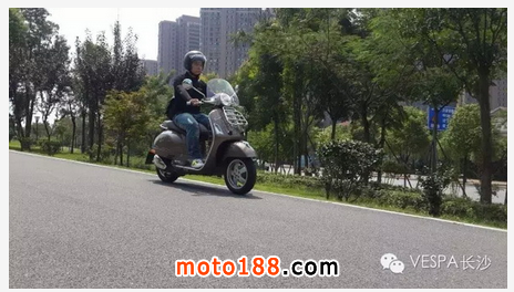 方正好有個十字路口,我穩著油門向右過彎,刻意的傾斜車身,70碼過彎結實的車身結構平順而優雅的從容過彎,這樣的彎道性能幾乎忘記這是一臺踏板車。但是純正的意大利血統無時不刻的在彰顯它的身份,VESPA全系的車都沒有傳統意義上的車架,都是采用一體沖壓成型的鋼板外殼作為車架和前輪單搖臂的設計也是傳承了70年。走到前方紅綠燈調頭往回走,打算結束這次試駕,這次試駕之前并沒有刻意的規劃路線,但是想試的也基本試出來了,VESPA的外觀,做工,加速,剎車,過彎都讓我感到驚訝,遠遠超過我的心理預期。