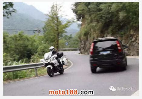 國賓車是一臺龐然大物,但是一旦你發(fā)動引擎上路,你絲毫感覺不到你是在駕馭一臺超過250kg的大家伙。國賓車的操控真的很不錯。得益于180的寬大后胎,低速行駛的時候車身穩(wěn)定性很好;跑山壓彎更是可以輕松滿胎。3檔3500轉的時候在安吉壓彎,那個舒爽讓你感覺仿佛是在駕馭一輛小踏板。