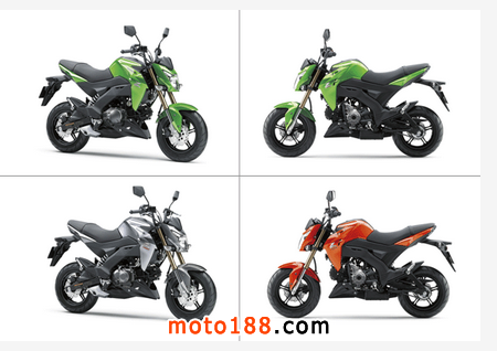 Z125有自動(dòng)離合和手動(dòng)離合(Z125 PRO)兩個(gè)版本,兩個(gè)版本除此之外無(wú)其他差別,為滿足更多的個(gè)性需求,川崎還提供了綠、灰、橙為主色的三種顏色可選。