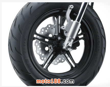 輪胎規(guī)格為:前 100/90-12,后120/70-12。