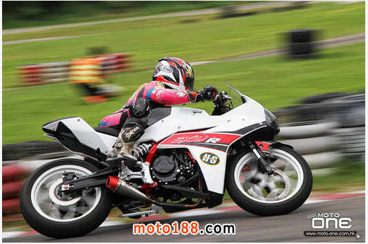 ●HYOSUNG GD250R在珠海金蘋果賽車場與迷你跑車拍跳(余振灝)。
