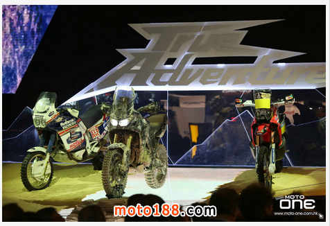 ●于2014年底舉行的意大利米蘭車展,HONDA展出了布滿泥濘CRF1000L Africa Twin原型車,旁為兩臺昔日及現役HONDA達卡戰車,Trun Adventure是形容新車是真正冒險車。