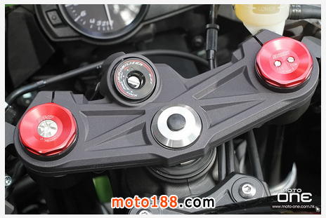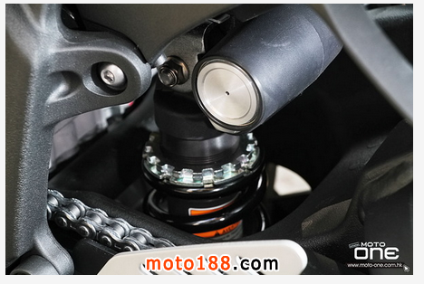 在左前叉頂是預(yù)載調(diào)校,右叉頂是壓縮及回彈的調(diào)校,根據(jù)廠(chǎng)方強(qiáng)調(diào)新避震的彈簧是專(zhuān)為蜿蜒的山路而設(shè),讓車(chē)輛在過(guò)彎及重量轉(zhuǎn)移過(guò)程中有更穩(wěn)定的行車(chē)表現(xiàn)。