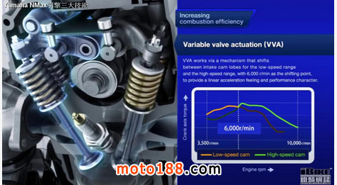 VVA以6000rpm為分水嶺,分別配以低速凸輪軸和高連單凸輪軸,讓生氣閥在高或低轉數之下有不同行程,以營造最佳進氣量,制造更線性的加速感。