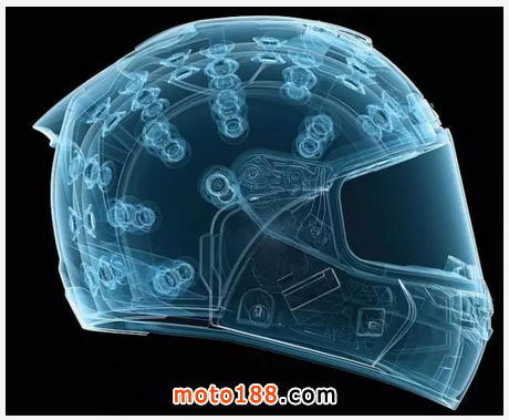 普通頭盔當中只以高密度復合聚苯乙烯泡沫(EPS也就是我們所說的泡沫塑料)為頭盔內部提供吸震功能,而“6D”分為內外兩層泡沫層,并將它們自家的ODS“減震”系統夾在其中遍布整個頭頂,通過這個系統內外兩層泡沫層相對移動,從而分散所帶來的沖擊力。擁有這個減震系統不僅可大幅度降低直線沖擊力,還能減少翻滾對腦部的傷害。