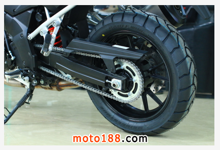 19寸前輪、17寸后輪十輻式鋁輪轂,出廠裝配普利司通戰翼BW-502輪胎。前輪胎規格為110/70-17,后輪胎規格為150/70-17。原廠輪胎在公路上的抓地性能尚佳,但在沙土、泥濘路面真是“只見轉速不見速度”;而在運動駕駛當車體傾角達到約30度左右時,因輪胎觸地弧度問題會導致操控段落感。大培子本人只關注輪胎的性能以及用途,對寬窄......