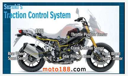 2014款V-Strom 1000是首款配置牽引力控制系統(S-TCS: SUZUKI Traction Control System也就是常說的循跡系統)的鈴木摩托車。該系統持續密切的監測前后輪速度、扼流閥位置傳感器、曲柄位置傳感器、檔位傳感器等部分的實時狀況,一旦發現車輪出現打滑的跡象,立即以四千毫秒的速度管理點火正時和進氣量,有效控制動力輸出。2014款V-Strom 1000提供三段STCS模式:模式Off即使后輪出現打滑STCS也不會干預動力輸出,建議有經驗的騎士或在特定情況下使用;模式1 敏感度較低車輪打滑到一定程度后,STCS才會開始干預動力輸出;模式2為最高敏感度模式,車輪只要出現打滑跡象STCS系統會迅速響應并介入干預動力輸出,直至打滑跡象消除,建議新手騎士或濕滑路面使用。配置了引力控制系統大大提升運動性能(出彎可以更早的加油)和安全保障,可以讓速度更快、心可以更踏實。牽引力控制系統的引入對鈴木來說有著決定性意義,是否意味著鈴木摩托車的電控時代即將來臨?