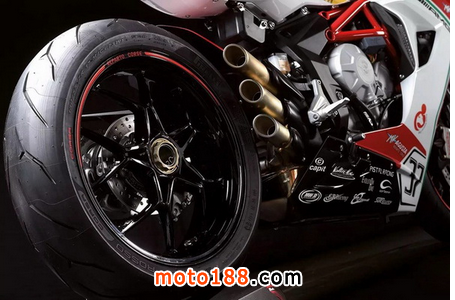 F3 800 RC擁有純正的賽車血統(tǒng),不僅采用了奧古斯塔WSS賽車的貼花,而且配有賽車手克魯澤爾和扎內(nèi)蒂的聯(lián)合簽名,腳蹬用上了Ergal產(chǎn)品,離合器桿、前剎車桿具有防折斷的接頭……當然,對于這臺風格和性能兼?zhèn)涞囊獯罄苘嚕胍锩纼r廉是不可能的。限量發(fā)行250臺的F3 800 RC,售價高達19250美元,比最新版雅馬哈YZF-R1還貴2000多美元;限量發(fā)行100臺的F3 675 RC略便宜些,但同樣貴過了YZF-R1。